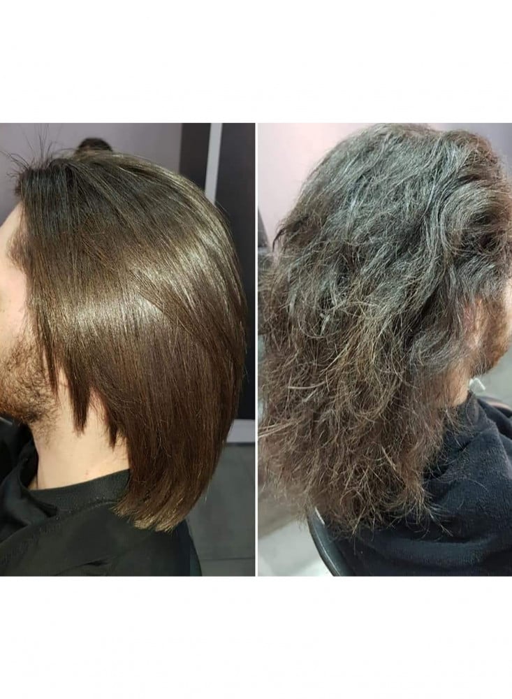 6- الخطوة الأخيرة وهي غسل الشعر بالماء والبلسم وبحـمام الكريم وليس بالشامبو ويجفف الشعر بالاستشوار جيداً.
